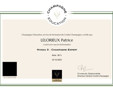 RM : Récoltant Manipulant. Assure l'élaboration, dans ses locaux, des seuls vins issus de sa récolte (La Bulle du Bassin).